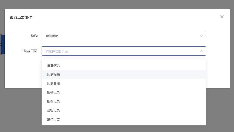 可以设置在前台组态页面中,设备历史报表、历史曲线、报警记录、报修记录、巡检记录和操作日志等常见的弹窗页面,方便在组态页面中快速了解例如历史报表、历史曲线等数据