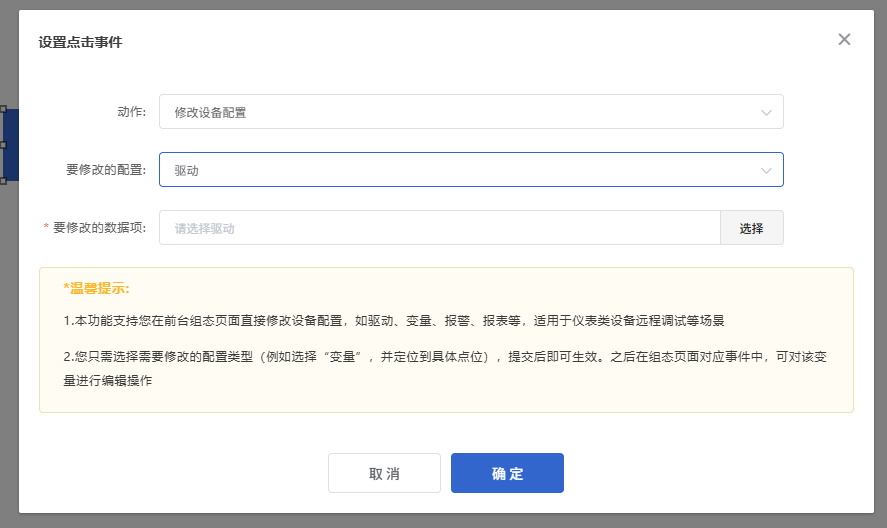 2.您只需选择需要修改的配置类型(例如选择“变量”,并定位到具体点位),提交后即可生效。