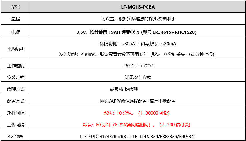 注意:采集间隔/上报间隔采用默认即可,间隔时间设置越长电池使用寿命越长,相反则电池使用寿命越短,设置要求:上报间隔≥采集间隔,上报间隔≤采集间隔×200。