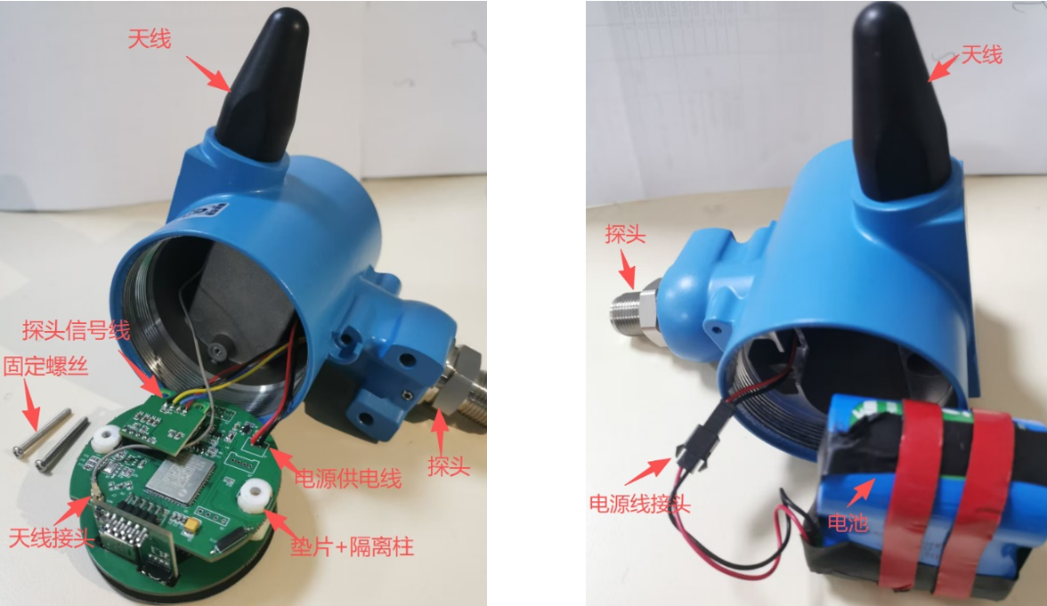 探头:根据所选机壳选择对应的探头并安装牢固(建议打好螺纹胶)。探头信号线和PCB板焊接牢固,测试正常后建议打胶(704硅橡胶)防止松动。
