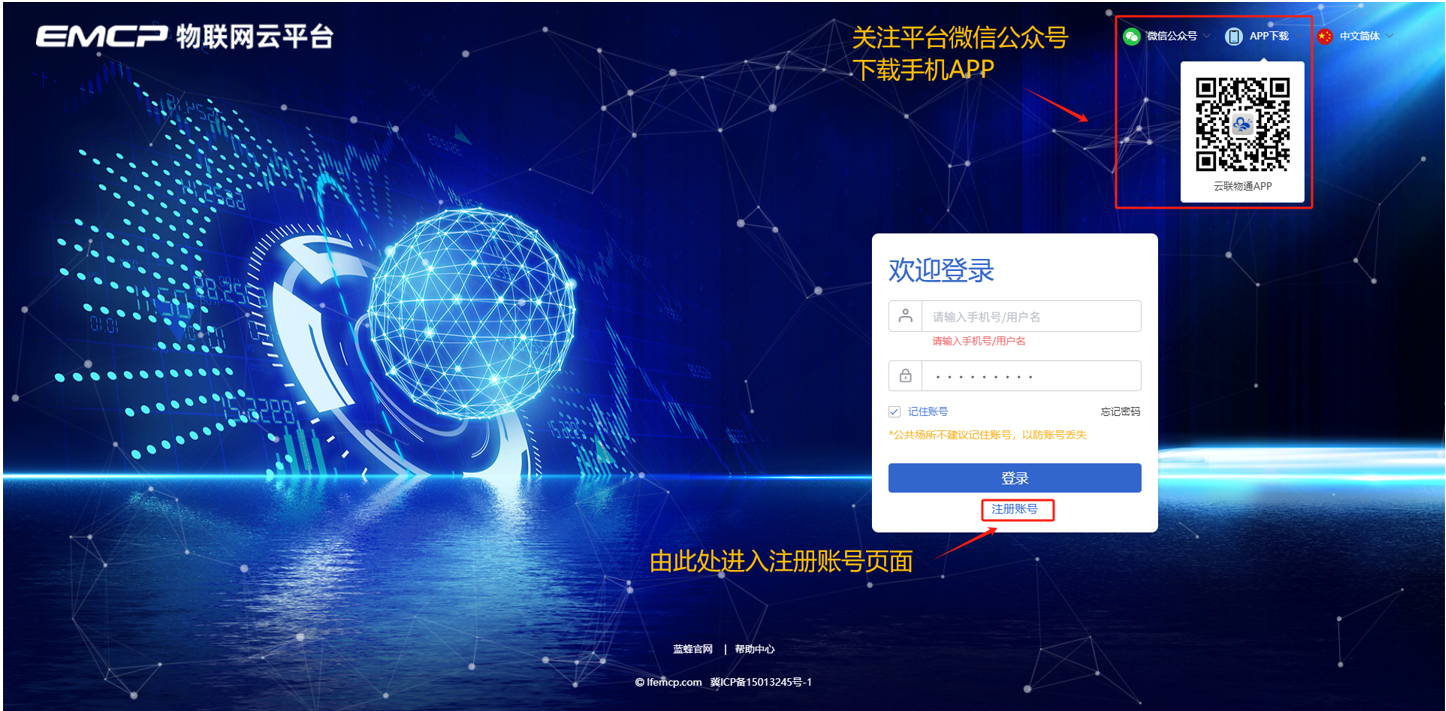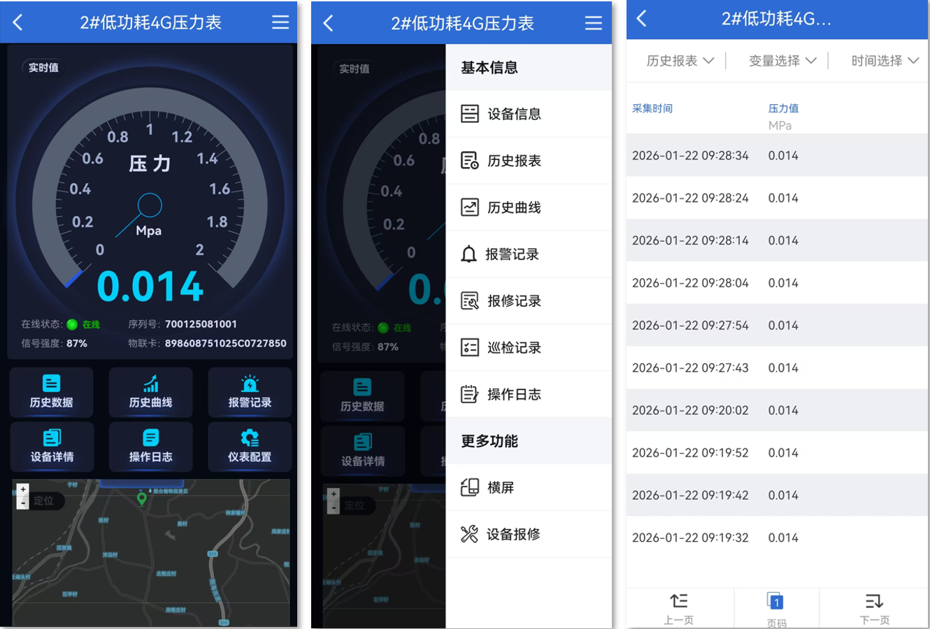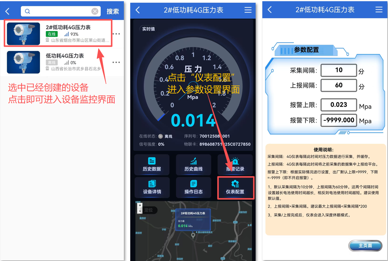 4G低功耗仪表支持电脑网页、手机APP(安卓/苹果),微信公众号、手机网页,4种访问渠道(公用同一账号)。以下将以常用的手机APP进行讲解说明。