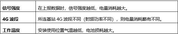 电池工作年限: 19AH(1节ER34615+RHC1520)电池不低于6年(10分钟采集/1小时上报/信号强度>50%/使用温度>-10℃条件下),缩短采集和上报时间会降低电池使用时长,反而会延长时长。