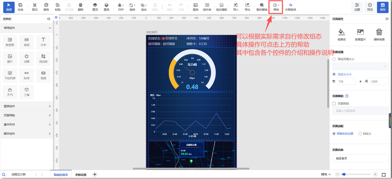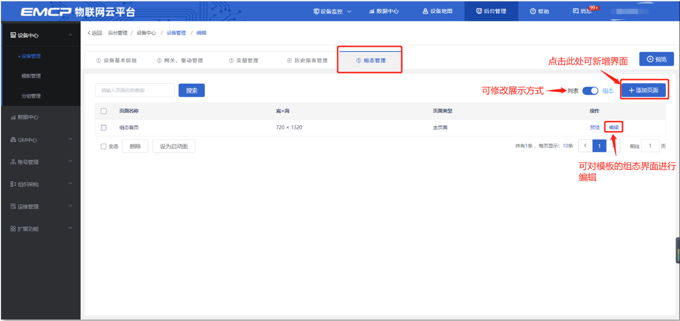 当设备解除绑定模板之后,点击“组态管理”即可编辑组态界面。