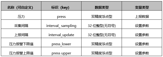 在③变量管理中,“标识”“数据类型”“变量类型”参数固定如下,不可修改。如填写其他地址会出现数据采集异常,一旦修改错误,必须按此表格重新填写。“名称”可自定义修改。