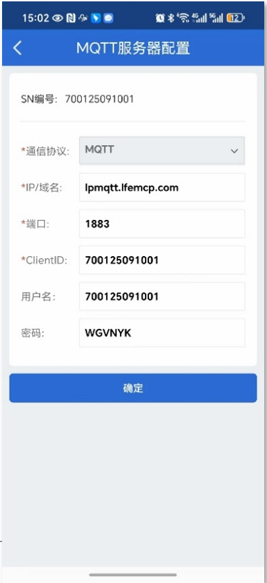 用户名/密码:连接MQTT服务器的身份标识,出厂默认为设备SN码和验证码。(这两个参数为平台方提供)。