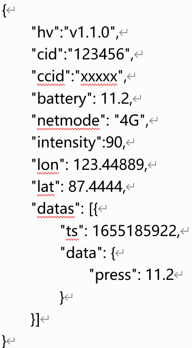 3、当到达上报时间间隔后,模组会开启4G联网将之前采集的数据(未上报)打包上报给平台。