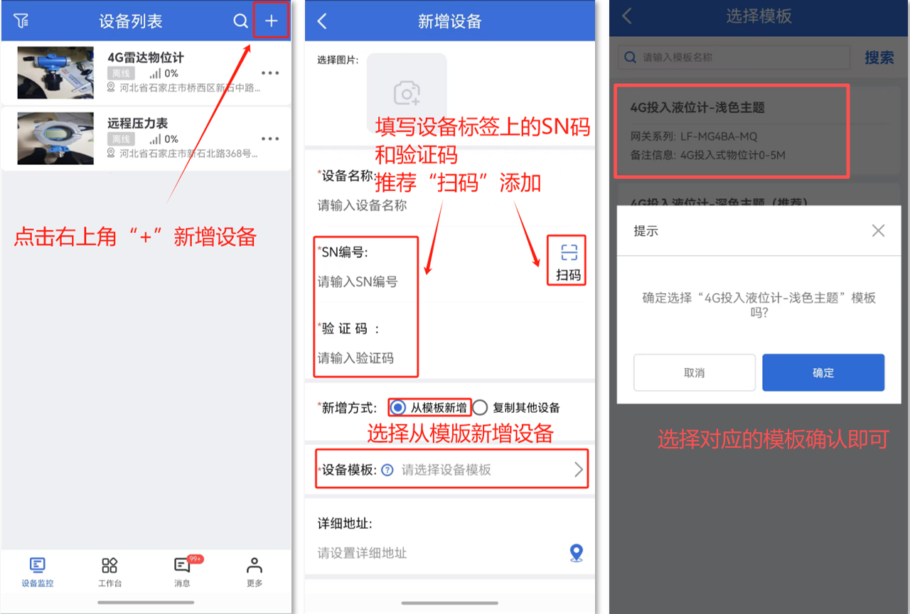 “设备名称”:为必填项,不可账号下其他设备重名。如填写“XX厂XX污水井液位”。