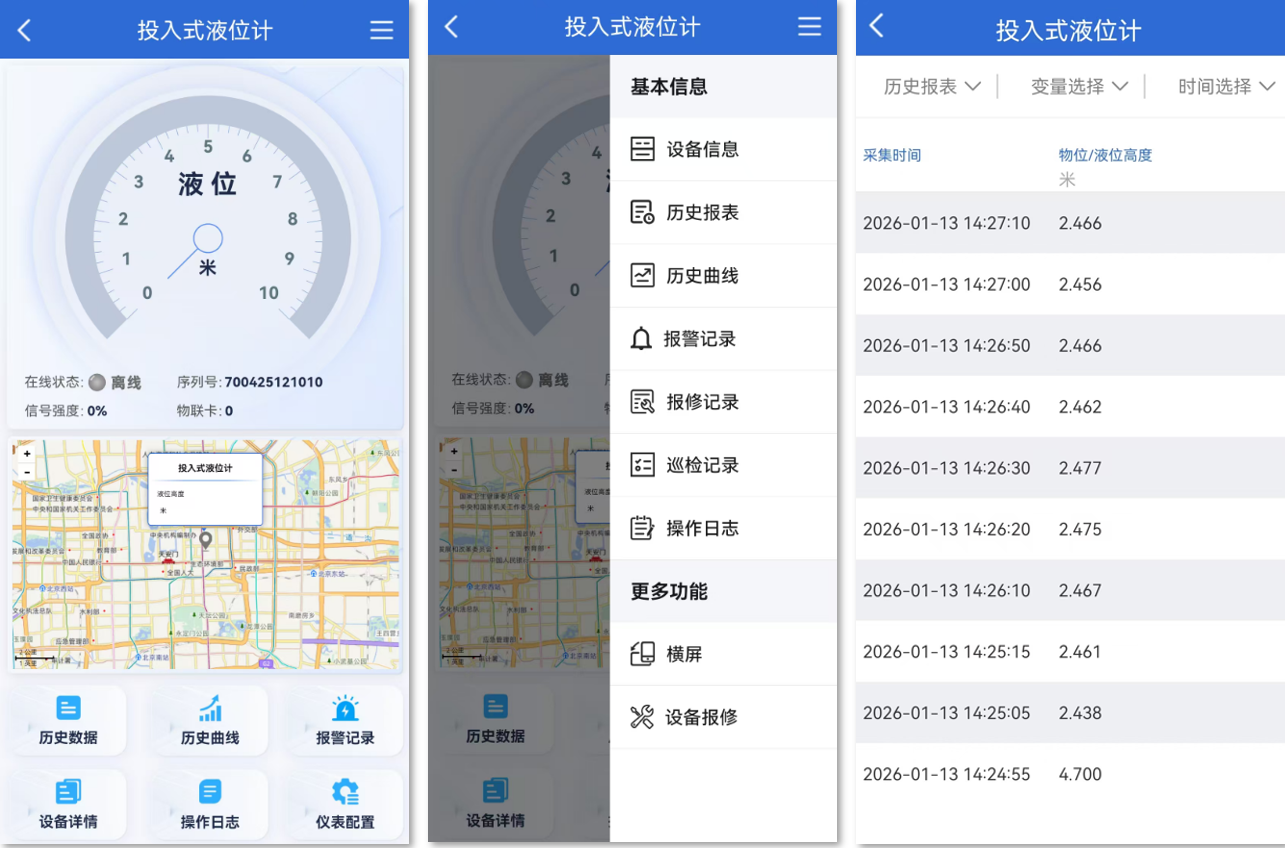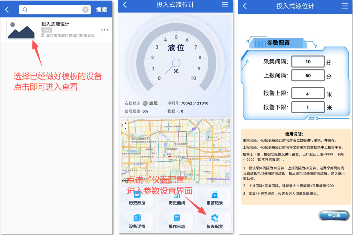 4G低功耗仪表支持电脑网页、手机APP(安卓/苹果),微信公众号、手机网页,4种访问渠道(公用同一账号)。以下将以常用的手机APP进行讲解说明。