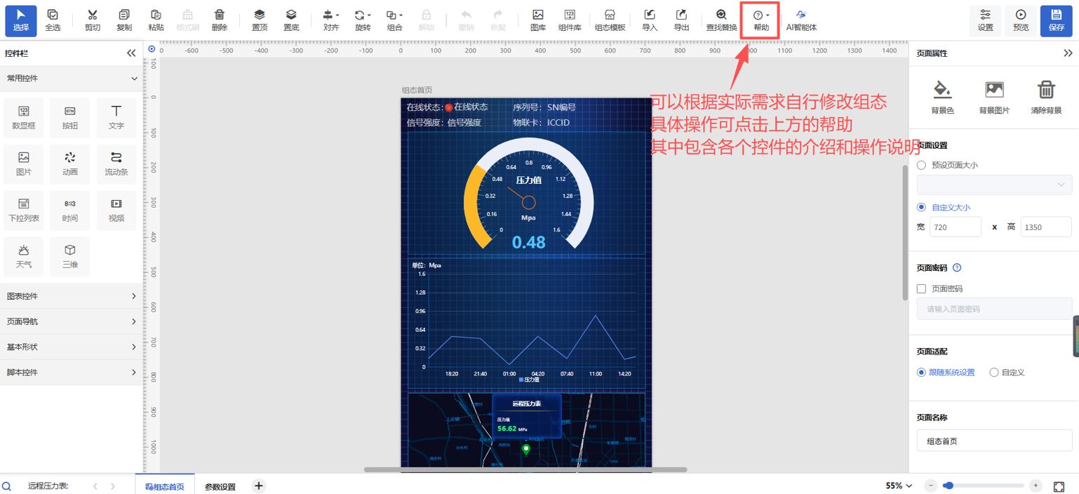当设备解除绑定模板之后,点击“组态管理”即可编辑组态界面。