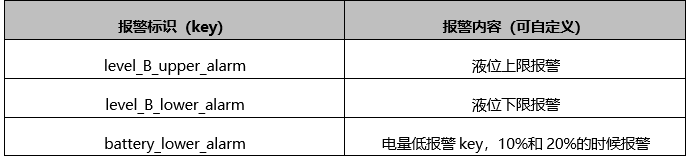 报警设置中,“报警标识”参数固定如下,必须按此填写,不可修改。“报警内容”可自定义修改。