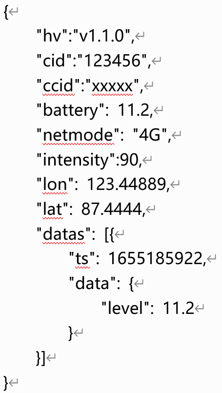 3、当到达上报时间间隔后,模组会开启4G联网将之前采集的数据(未上报)打包上报给平台。