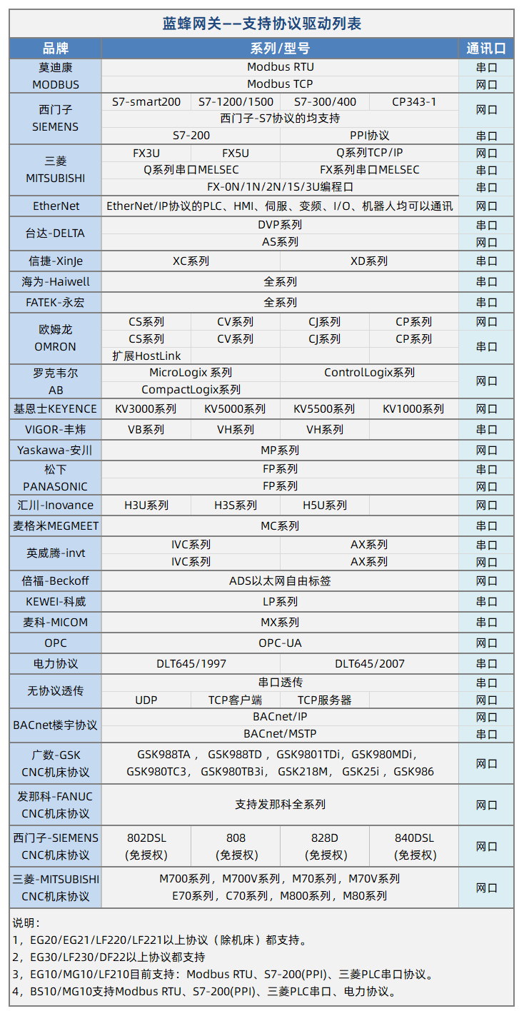 EG系列网关支持的协议 20260318